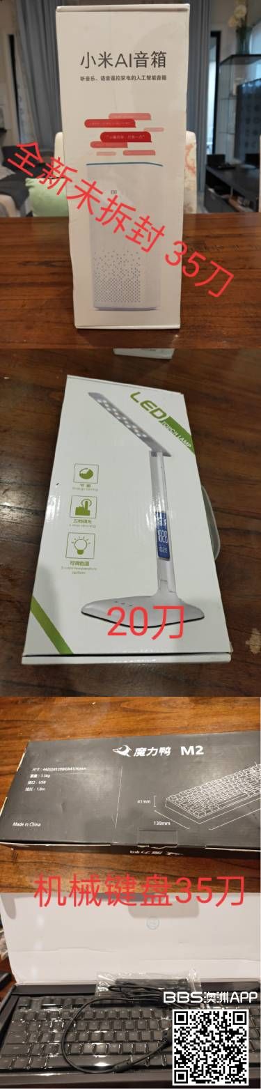 1.全新未拆封小米AI音箱蓝牙wifi小爱同学人工语音遥控智能音响 35刀 2.冷暖光多功能触控LED台灯 20刀 3.九成新 魔力鸭M2S CHERRY MX轴 蓝光 机械键盘(国内买成549)35刀 微信Roger_195