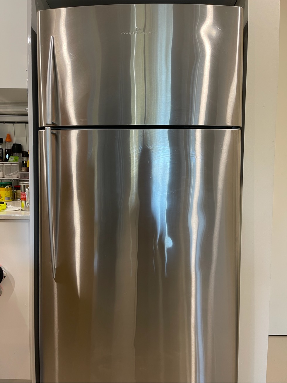 因为快要搬家 想买一个大一点的双门对开冰箱 所以就把这个冰箱卖了 517升 容量十分大 够放一家4口 两三个礼拜的菜 制冷良好 银灰色 时尚大方 本地澳洲品牌 $350 可议 想要更多图片或资讯--> wx:ckckckckk11