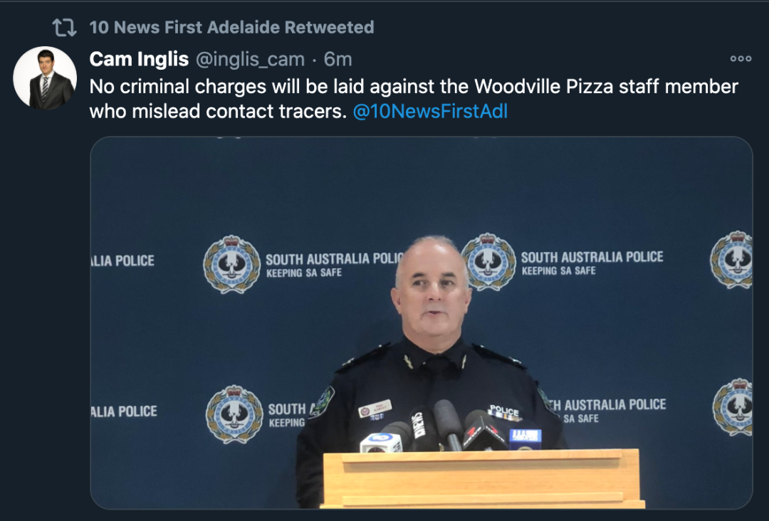 据报道,此前,Woodville Pizza Bar一名工作人员的谎言被控引发了南澳严厉的COVID-19封锁,警方对该事件的主要调查发现,没有足够的证据对这名男子提出指控。 南澳严厉的COVID-19封锁出于当局对Stamford隔离酒店的 ...