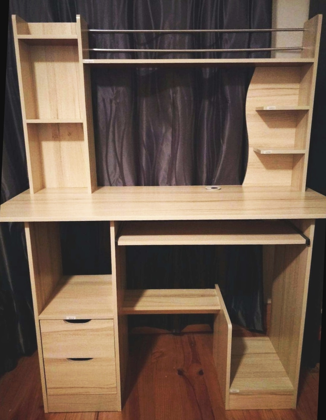 多功能书桌出售,$120. 长110CM, 高140CM, 宽45CM。存储空间多,可以放书,摆饰品,音响设备,键盘,电脑主机,还有两个抽屉等等。这样的书桌在澳洲真的不好找哦! 地点Firle, 1月11日前自取,请联系0424768598.