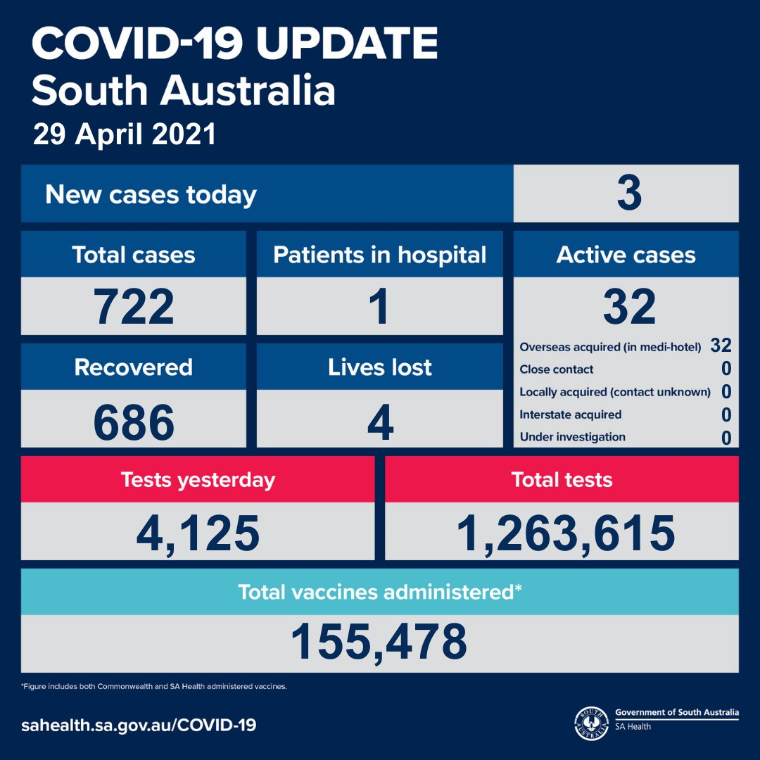 据澳媒报道,南澳今天新增3例海外输入病例。 南澳卫生部透露,在妇女和儿童医院为50岁以上的人开设的阿斯利康公共诊所将于周一开业,从而爆发了新的疫苗纠纷。 一位女发言人说,人们将能够在未来几天通过南 ...