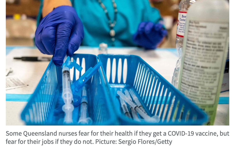 越来越多的昆士兰护士选择不接种COVID-19疫苗,声称这种疫苗 "过于实验性",并担心他们的立场会影响他们的工作和薪水。 昆士兰护士专业协会对1000名护士的调查发现,几乎四分之三的人不同意对一线工人强制接种 ...