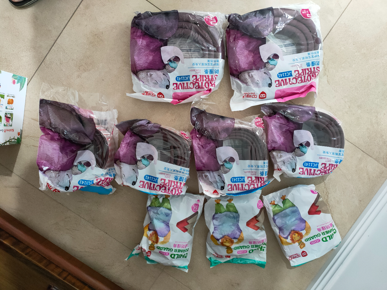 全新防撞条和防撞转角共7包,$5/包,有1包粗防撞条和1包转角打开用过的,$2/包。买3包送1包,买5包送2包,再加送打开的两包。感兴趣的请加微信。 已出