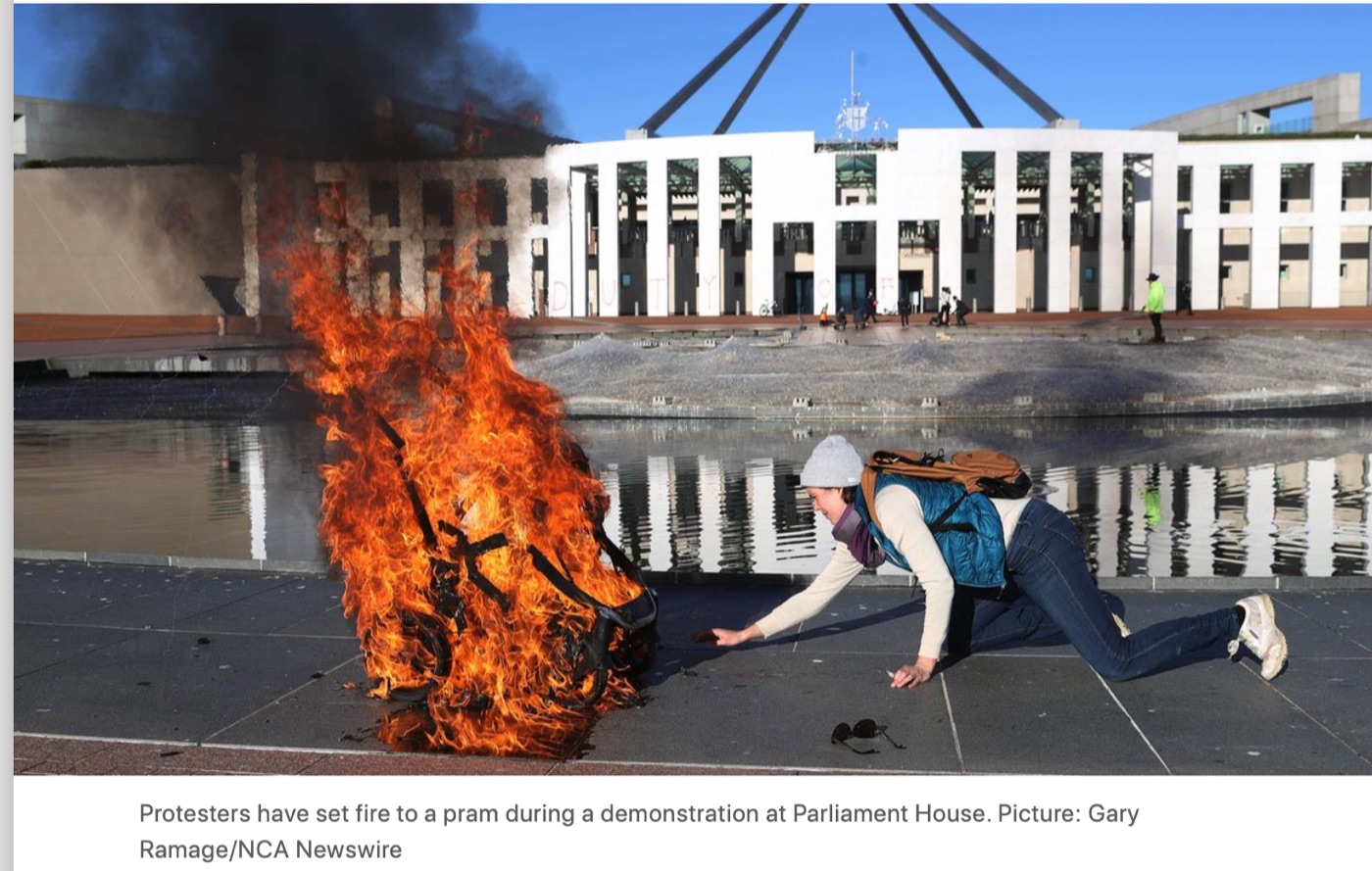 在议会大厦举行的抗议活动中,一辆婴儿车被烧毁,总理的住宅被涂抹,目前已有8人被捕。 "我不会以任何方式、形状或形式将这种愚蠢行为与澳大利亚人的善良本性联系在一起,他们和我一样深切关心这个 ...