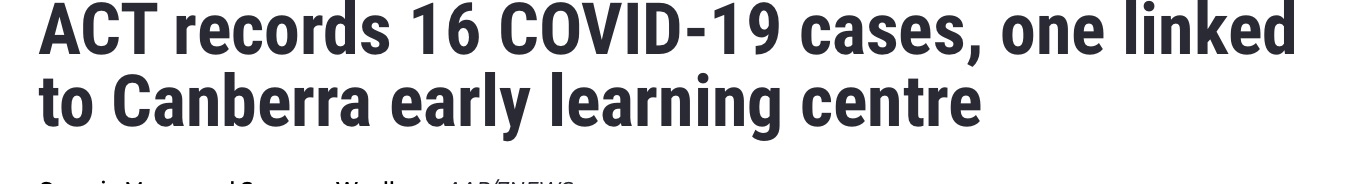 澳大利亚首都地区记录了16例新增本土冠状病毒病例,使堪培拉的疫情总人数达到83例。 然而,人们仍然担心,新南威尔士州病例的急剧上升将影响堪培拉今后的限制措施,该州录得681例的日增新高,并有一例死亡。 ...