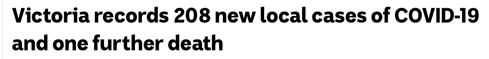 维多利亚州过去24小时记录了208例新增本土获得的COVID-19病例,并且该州还有一个人死于这种病毒。 新病例是从昨天收到的48,572份测试结果中确定的,在州政府管理的场所有33,511个剂量的疫苗注射。 根据联邦卫生 ...