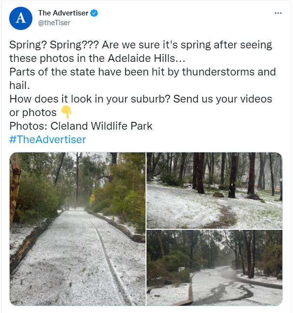 今天,恶劣天气袭击着阿德莱德! 建议前往Hills地区的驾驶者根据情况谨慎驾驶。 提醒:将你的车移到车库或远离树木固定好松散的户外物品带雨伞,小心倒下的树木和电源线寻求庇护,最好是在室内,不要 ...