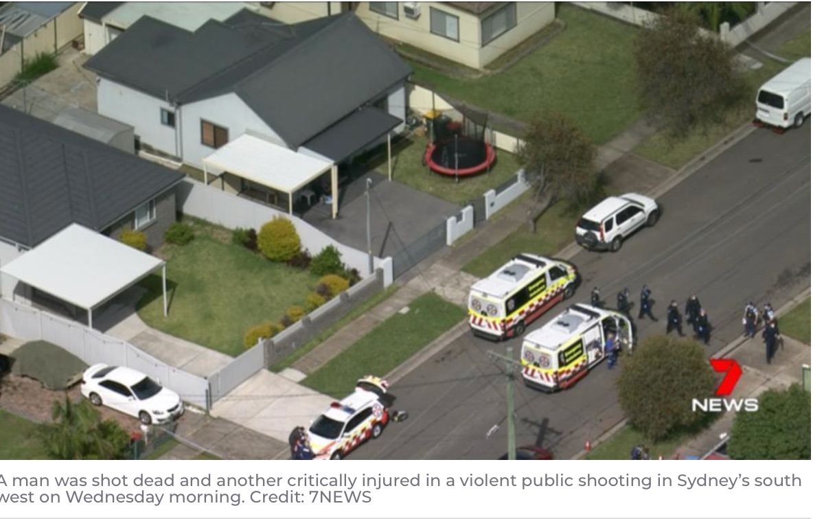 10月20日周三上午,在悉尼西南部发生的一起公众暴力枪击事件中,一名男子被枪杀,另一名受重伤。 图文来源:7news 原文链接