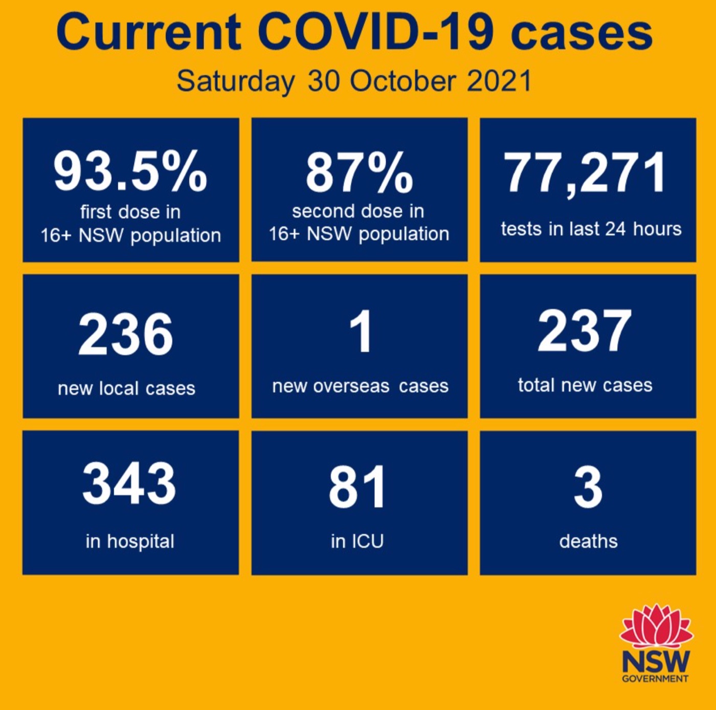 在截至周五晚上8点的24小时内,新州录得236例本土新增感染病例,3例死亡,共进行了超过77,000次测试,而93.5%的16岁或以上的新州居民现在已经接受了至少一次疫苗注射。 该州的疫苗完全接种率为87%。 在12-15岁的 ...