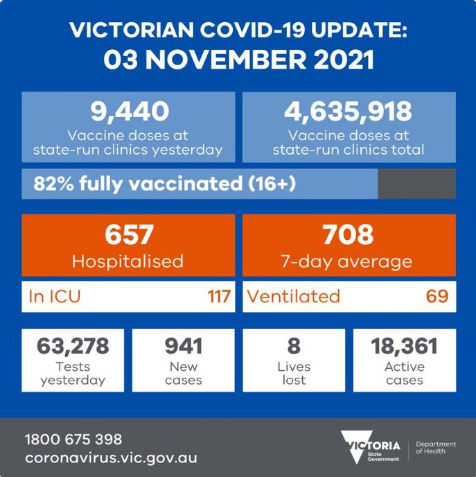 维州过去24小时录得941例新增本土病例!8例死亡!