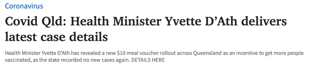 昆士兰过去24小时没有记录到新增Covid-19病例,州政府与昆士兰俱乐部公布了一项新的激励措施,为接种了第一针疫苗的人提供$10的餐券。 图文来源:couriermail 原文链接