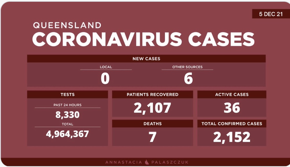 2021年12月5日,星期日,昆州新冠病例情况更新如下: 无新增本土确诊病例, 7例输入病例; 活跃病例36例。 共确诊2152例,死亡7例。 昨日共进行检测8330次,共进行检测4964367次 图文来源:twi ...