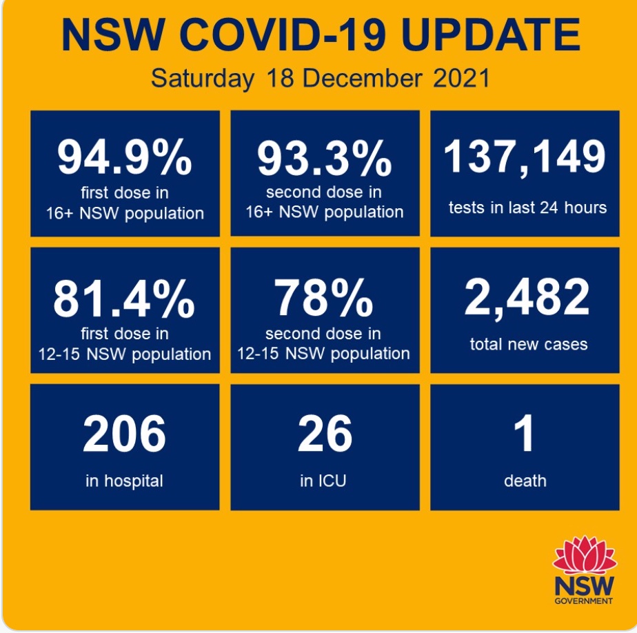 新南威尔士州在周六录得2482例冠状病毒新增感染病例。 新州州长Dominic Perrottet似乎决心坚持自己的路线,鼓励个人承担责任,而不是重新实施限制措施,如在零售场所强制戴口罩。 他坚持其政府的计划 ...