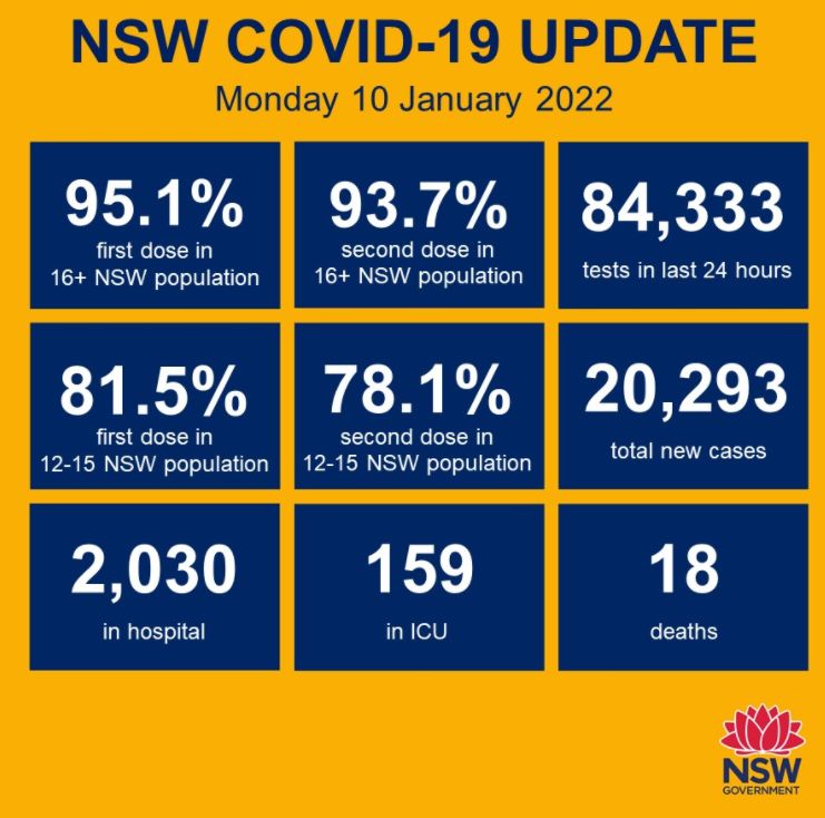 周一新州录得20293个新增确诊病例,18例死亡病例,中包括一名五岁以下的儿童,标志着该州自疫情开始以来最致命的一天。 由于病例仍在30,000例以上,维州的住院人数再次急剧增加。 周一有34,808个新增确诊病 ...