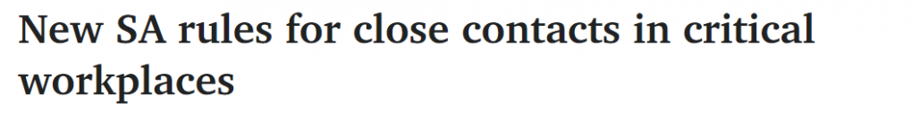 根据昨晚发布的新规则,数千名被认为是确诊病例的 "关键密切接触者 "的南澳工作人员如果没有症状,就可以返回工作岗位。 图文来源:The Advertiser 原文链接: