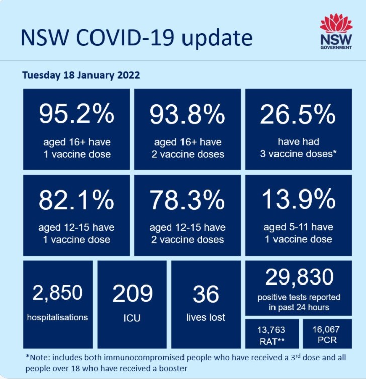 新州在周二记录了29830个新增确诊病例,36人死亡,成为该州在疫情中单日死亡人数最多的一天。 维州再次录得COVID-19病例的下降,Brett Sutton透露病例数可能已经达到顶峰。 周二维州录得20180个新的阳性测试 ...