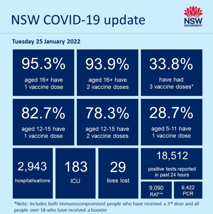 随着Omicron疫情继续在新州蔓延,该州的卫生限制将至少再维持一个月。 维州记录了COVID-19病例和住院人数的增加,以及29人死亡。 星期二维州录得14836个新的阳性测试结果,其中8539个来自快速抗原测试,6297 ...