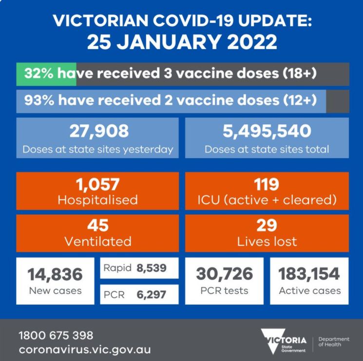 随着Omicron疫情继续在新州蔓延,该州的卫生限制将至少再维持一个月。 维州记录了COVID-19病例和住院人数的增加,以及29人死亡。 星期二维州录得14836个新的阳性测试结果,其中8539个来自快速抗原测试,6297 ...