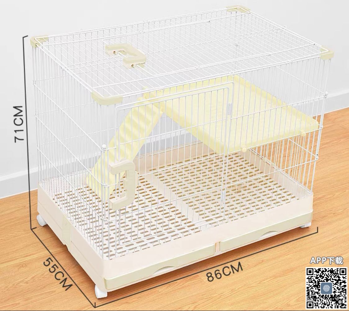 可双层的82*55*66cm的兔笼或天竺鼠笼。 笼子自带屎盆抽屉,清理简单。出笼子附带半包尿不湿用来铺抽屉、挂式食盆、三角形厕所、水盆、挂式水盆、笼子清洁剂、兔毛刷、指甲钳、小玩具、小零食和营养干草。只用过一个 ...