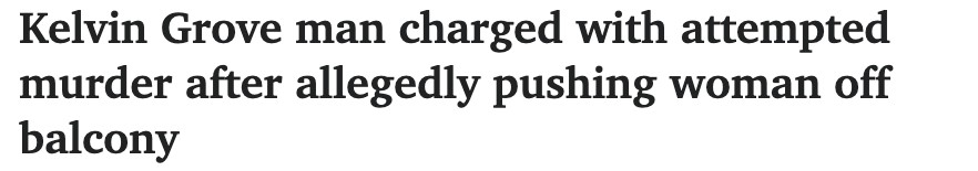 Kelvin Grove公寓的一名男子将女子推下阳台后被指控谋杀未遂!
