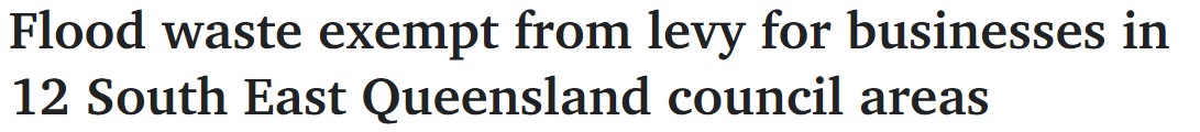 昆州政府规定,对昆州东南部12个市镇地区的企业的洪水垃圾免征收垃圾税。 "我们正在与垃圾处理部门的代表合作,以确定他们的处理能力,帮助管理清理工作,因为一些废物处理行业的企业也受到了最近的雨 ...