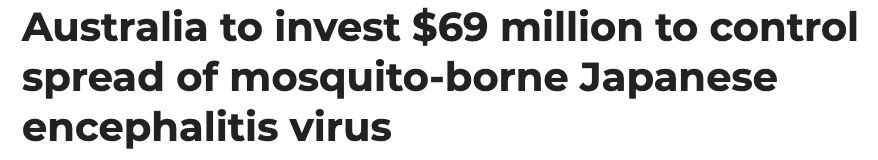 联邦政府将投资6900万澳元控制日本脑炎病毒(JEV)的传播,本周这种病毒已经夺走了两名澳大利亚人的生命。 “澳大利亚政府还将采购疫苗,公平地分配给各州和地区。” 直接接触或居住在猪和蚊子附近的居民以 ...
