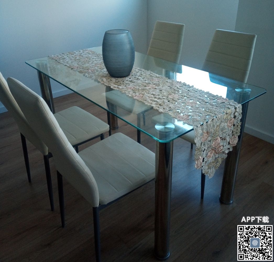 餐桌四把椅子70刀,花瓶桌旗可赠送。海信冰箱120,city自取,0415532208只回复短信。
