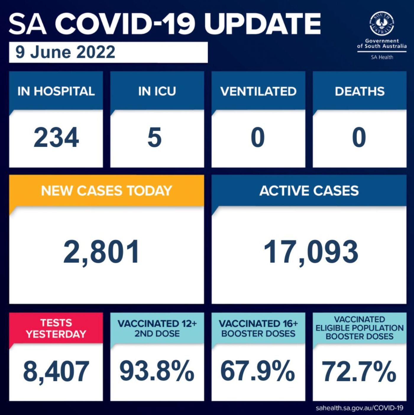 在过去的24小时里,南澳新增2801例,无人死亡! 目前南澳有17,093个活跃病例。 目前南澳有234名COVID-19患者住院,其中5人在重症监护室。 在住院患者中,有130人已接种三针或四针疫苗,79人未接种或接 ...