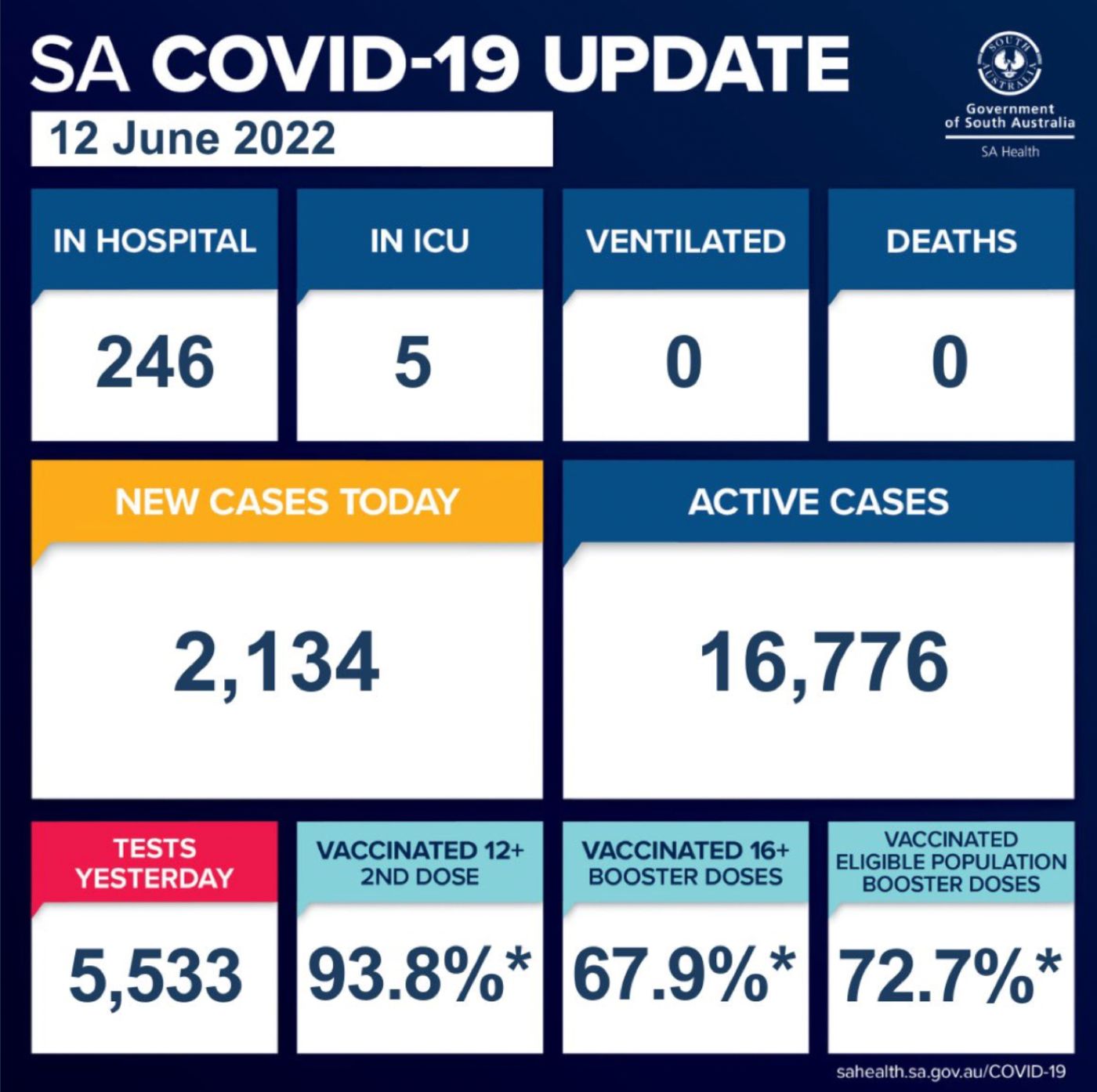 在过去的24小时里,南澳新增2134例,无人死亡! 目前南澳有16,776个活跃病例。 目前南澳有246名COVID-19患者住院,其中5人在重症监护室。 在住院患者中,有143人已接种三针或四针疫苗,101人未接种或接种 ...