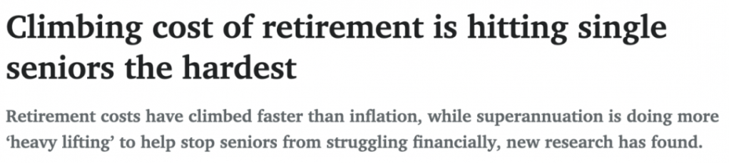 研究发现,澳大利亚人退休成本的攀升速度超过了通货膨胀率,养老金在帮助老人免于陷入经济危机方面发挥了巨大作用。 ASFA还研究了社会服务部和澳大利亚统计局的数据发现,目前有40%的新退休人员领取养老金 ...