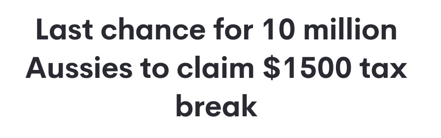 1000万澳大利亚人还有机会获得1500澳元的税收抵免,但必须尽快行动。 Chapman称:“对于年收入低于3.7万澳元的人来说,抵免额为675澳元。” “如果年收入在3.7万澳元和4.8万之间,抵免额也将增加,最高可达1 ...