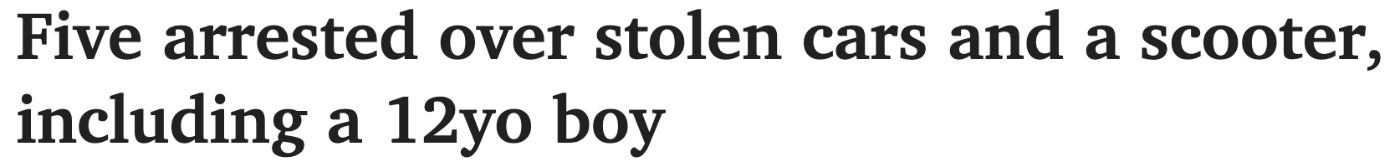 南澳警方在Oakden发现3辆被盗汽车和1辆被盗踏板车,逮捕5名青少年,其中包括一名12岁男孩。 警方还找到了一辆Mercedes sedan车,该车也在Toorak Gardens被盗。 附近还有一辆被盗的Kia Sorrento车和一辆踏 ...