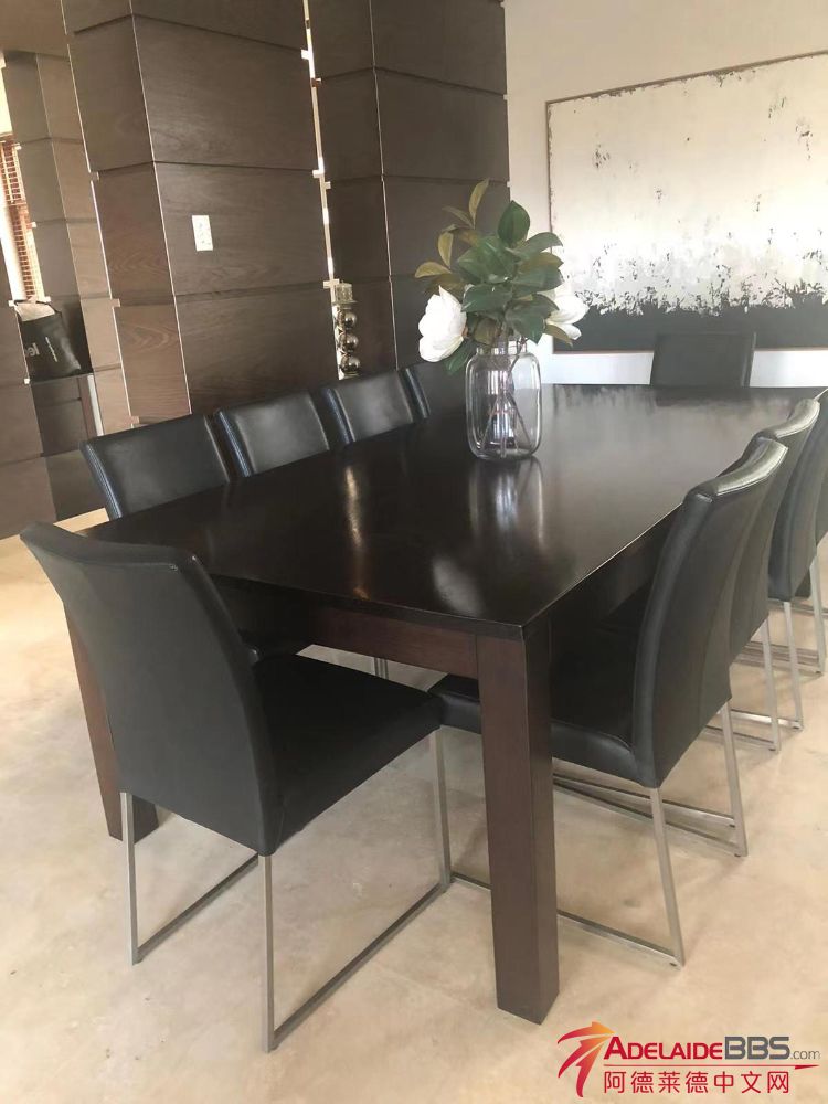 帮local好友出一套高品质桌椅! 2米4长实木桌子,配十把真皮椅子 桌子木材为Australia oka,朋友养护的很好,无明显磕碰损坏痕迹,因换置新家具出~ 原价$5000+ 现$1200刀 Glynde SA 5070自取~ 联系方式:扫二维码 ...