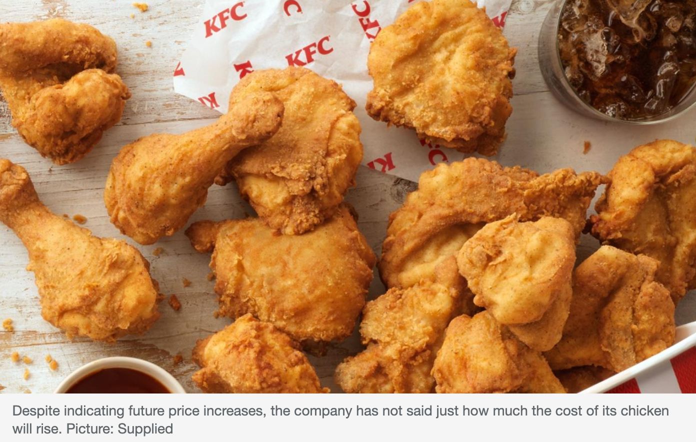 新文件显示,对肯德基价格感到不满的粉丝将再次受到价格冲击。 该公司还宣布,过去6个月的收入增长了15%,达到6.14亿澳元。 O'Malley先生警告称,预计“通胀压力在短期内仍然存在”。 图文来源:news 原文链 ...