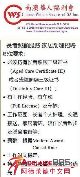 南澳华人福利会-招聘启事 Chinese Welfare Services --R ...