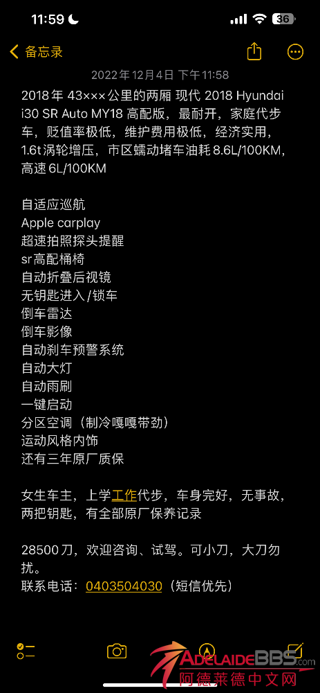 2018年 43×××公里的两厢 现代 2018 Hyundai i30 SR Auto MY18 高配版,最耐开,家庭代步车,贬值率极低,维护费用极低,经济实用,1.6t涡轮增压,市区蠕动堵车油耗8.6L/100KM,高速6L/100KM