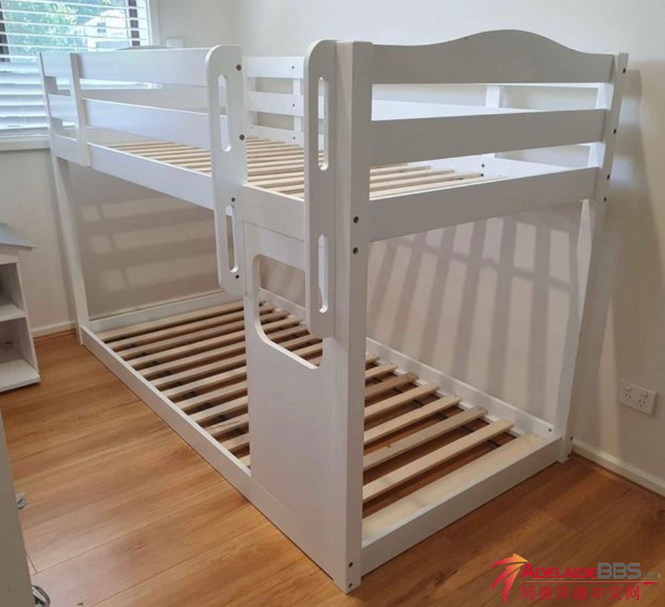 白色单人上下床. 床架原价$749卖$350 好牌子superamart Woodville gardens 提货 加两个单人床垫子$60 $70送货 联系0402911565