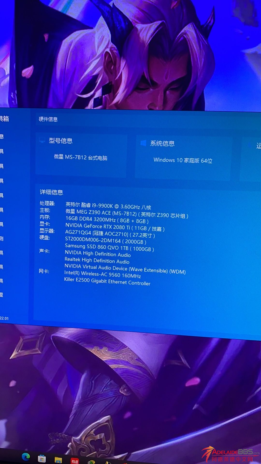 配置如图所示 2020年年初配置 如今玩各大3A游戏开最高配置顺畅嘎嘎爽 AOC顶级屏幕半卖半送 型号可查 亚马逊现货还要800多刀 电脑和显示器都带盒 售价打包为2800刀 爽快的哥们可以小刀很多 电话联系0447720763