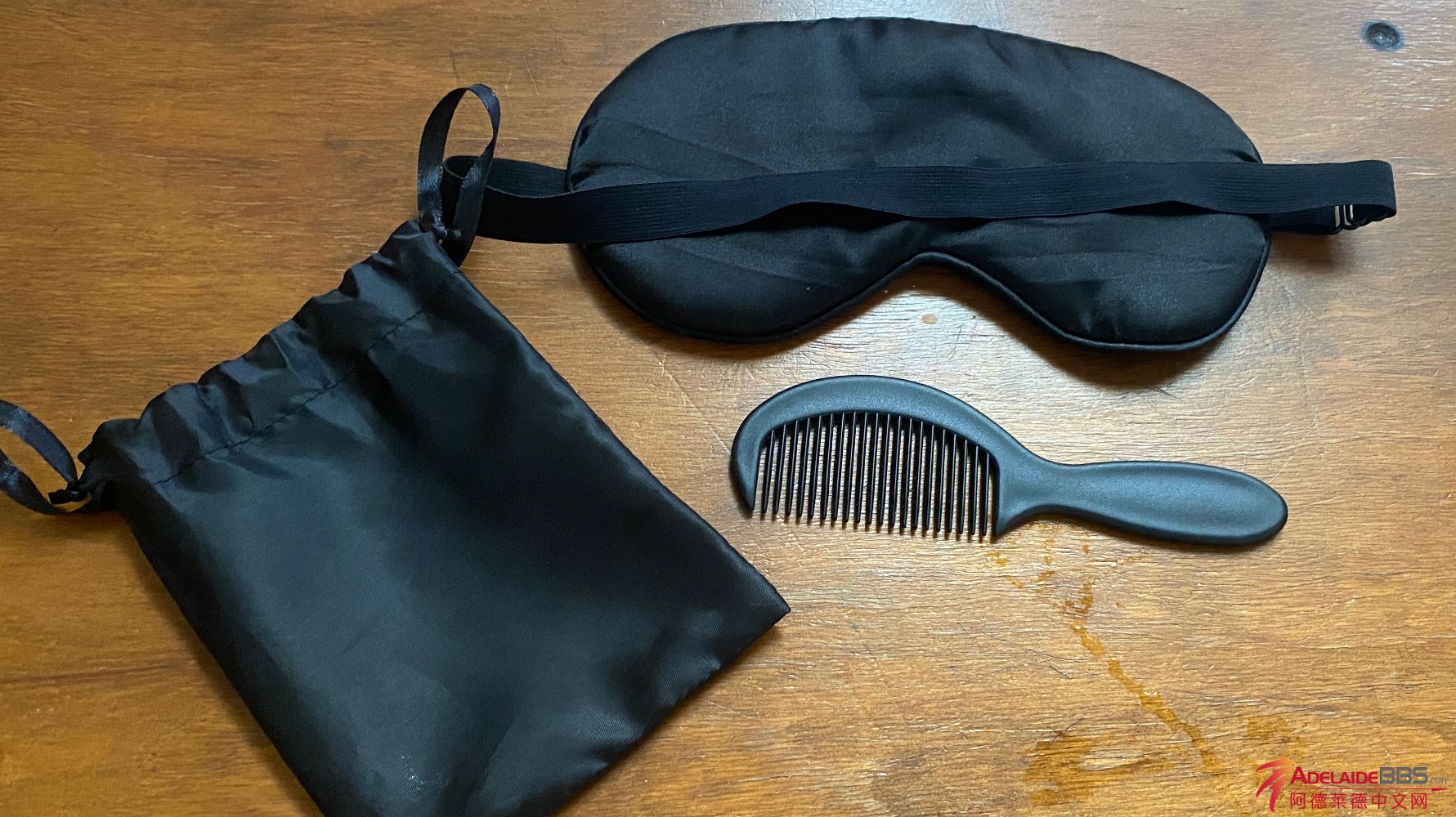 8刀出闲置眼罩和小梳子,自带防尘袋。眼罩很柔软,遮光。
