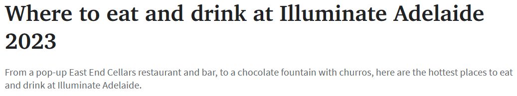 今年的Illuminate Adelaide是一场感官盛宴,全城食物和饮料供应量相较去年增加了三倍。 从阿德莱德大学草坪上的East End Cellars到巧克力喷泉,今年的活动比2022年首届活动更丰富。 在新的产品中,阿德莱德大 ...