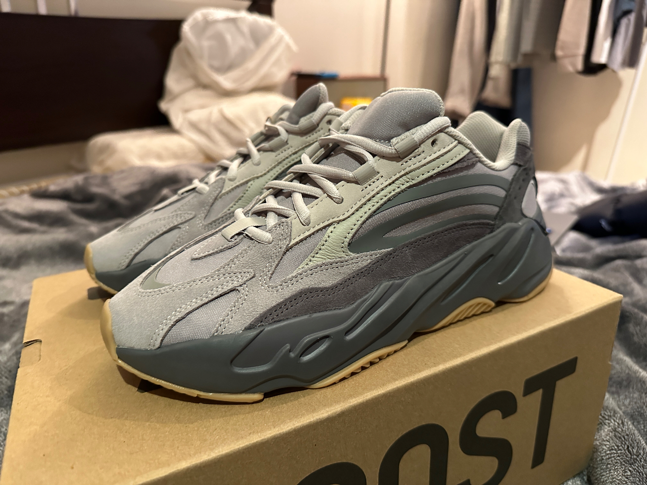 一双全新yeezy 700 火山灰 US9 全新 原价 正码 官网抽签中的 city 自取 需要请联系微信 Hireath22