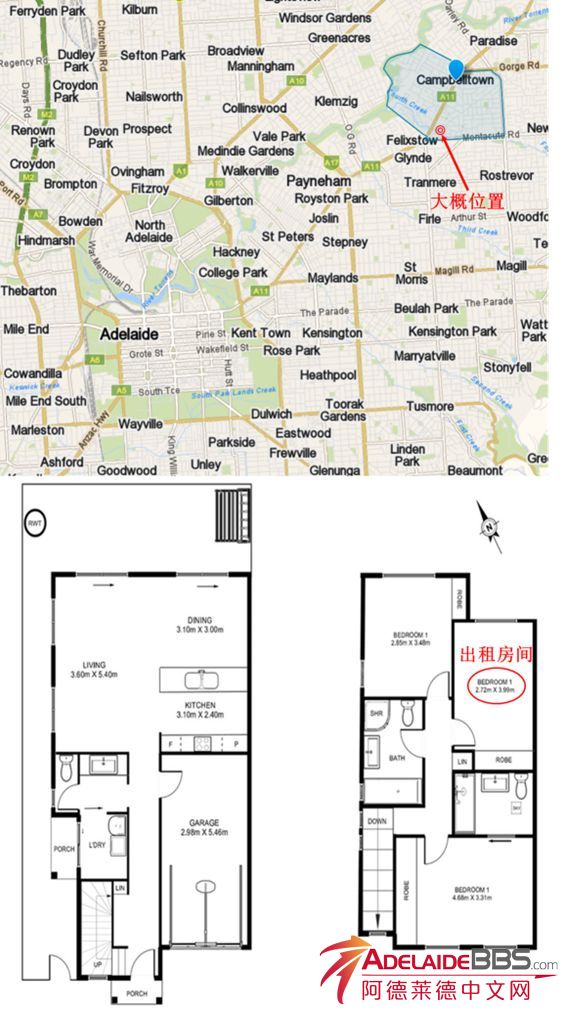 《阿德莱德东北区三房三卫招租》诚招室友,只招女生,200刀/周。 关于房屋位置:-位于Campbelltown西侧,靠近Felixstow的shoppingmall(有Foodland),距离Newton的shopping mall(有Coles和Woolworths)公交车车程 ...