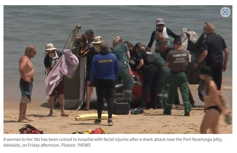 据悉,一名妇女在Port Noarlunga海滩被鲨鱼咬伤脸部,这是一个月内南澳水域发生的第三起鲨鱼袭击事件。 一名十几岁的目击者称,在急救人员和医护人员将这名妇女抬上救护车之前,他们可以看到她的脸鲜血直 ...