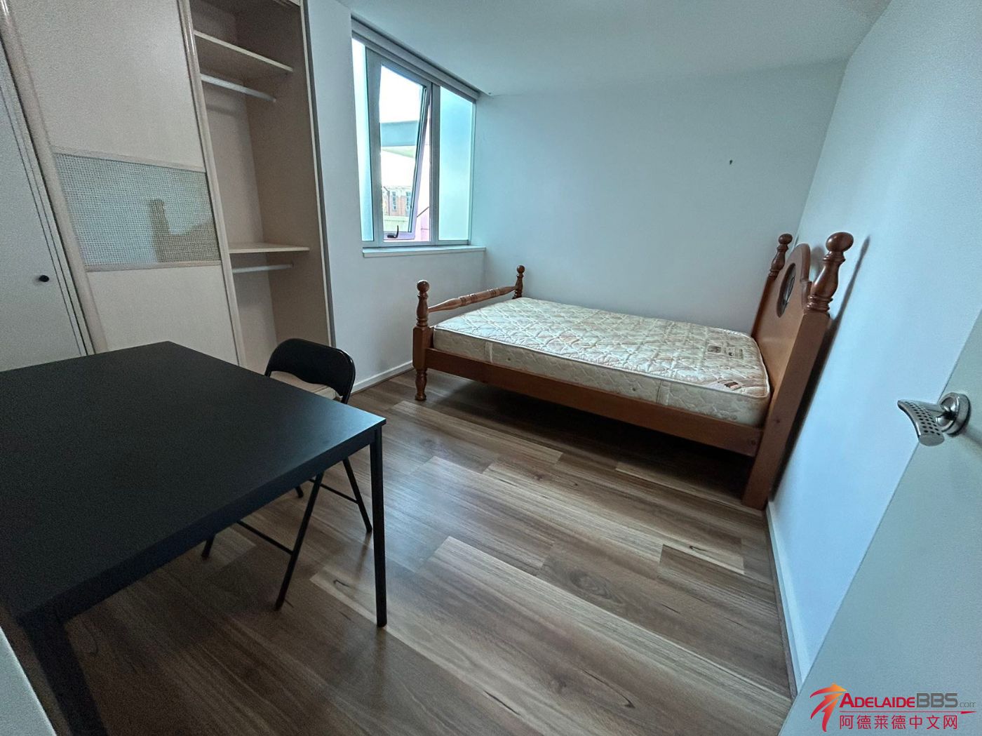 City内,阿德莱德大学对面,楼下就是公交和tram站,步行至rundle mall只要8分钟,2室一厅,阳光单间260包所有bill(短租2.28-3.13),只招一人,只出短租,Queen size双人床,高速NBN网络,全房瓷砖+木地板,书桌椅+ ...