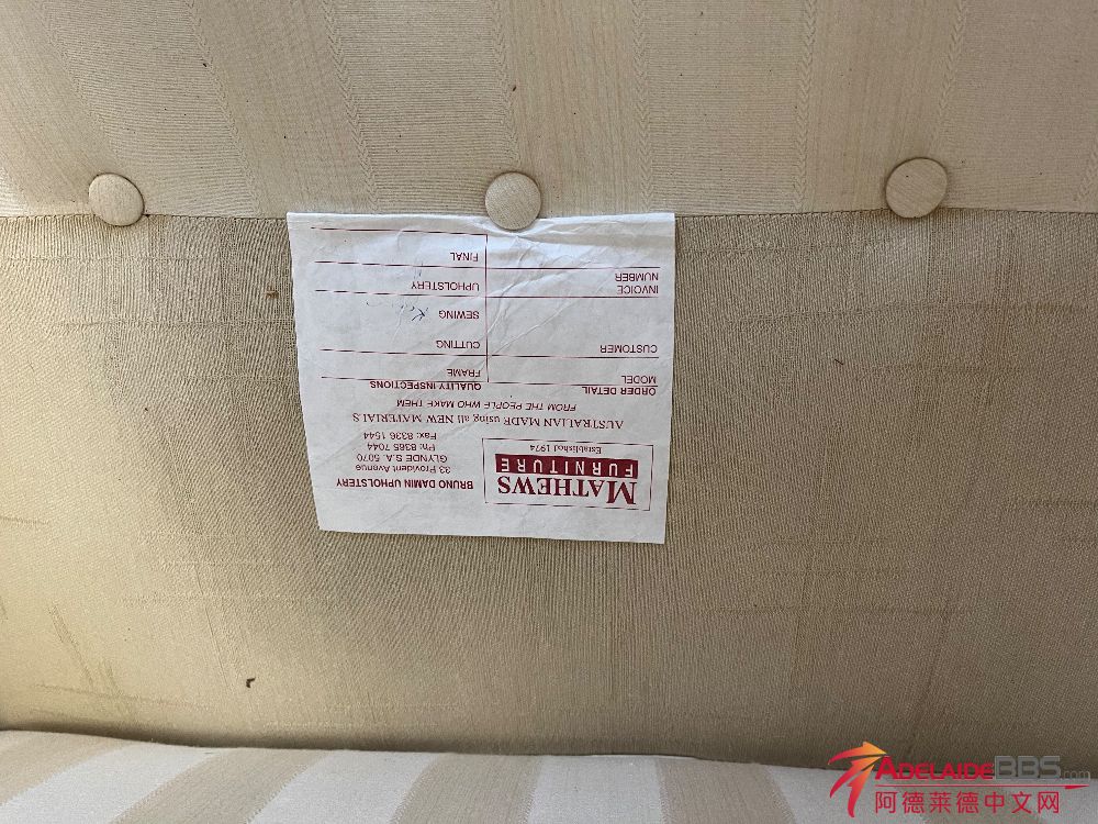 9成新澳洲除燥的一套沙发。$390 包括一个三人座沙发加一个单人座沙发 高档沙发包括ottoman Woodville gardens 提货 $80送货 联系0402911565