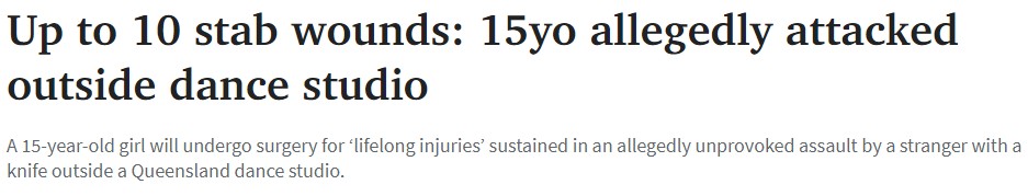 一名15岁女孩据称在昆士兰舞蹈工作室外,遭到一名陌生人持刀无端袭击,造成“终身伤害”,将接受手术。 家长们获得了一个网站链接,该网站为可能受到创伤的儿童提供了一些提示。 昆州警方称,他们到场后在附 ...
