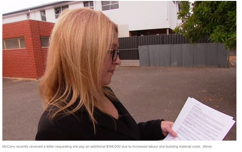 阿德南郊的一位三个孩子的母亲警告潜在购房者买房一定要谨慎,否则不但会面临交房延迟还可能付更多的费用。 据了解,Fidelma McCorry的新房开工比计划晚了近两年,开发商现在要求她额外支付14万澳元。 她 ...