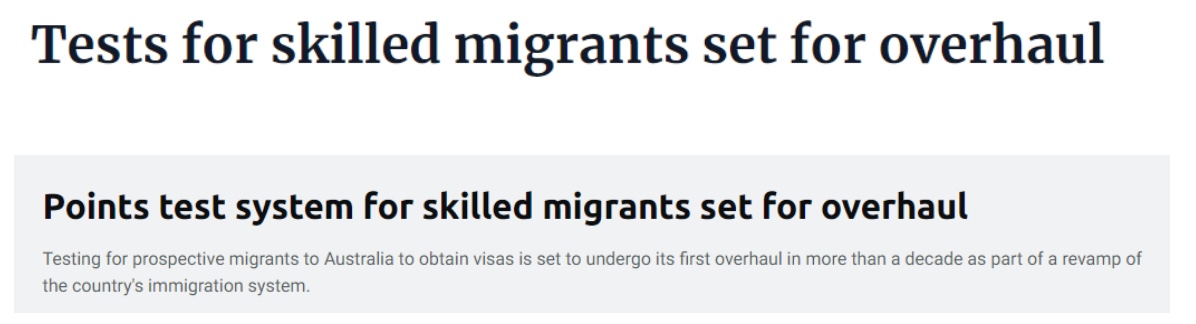 澳联邦政府表示,在决定减少移民数量后,将对技术移民评分测试进行改革,这是十多年来的首次全面改革。 移民审查发现改革后的打分测试应该优先考虑:关注与移民成功找到技术工作相关的特征 高学历应得到更高 ...