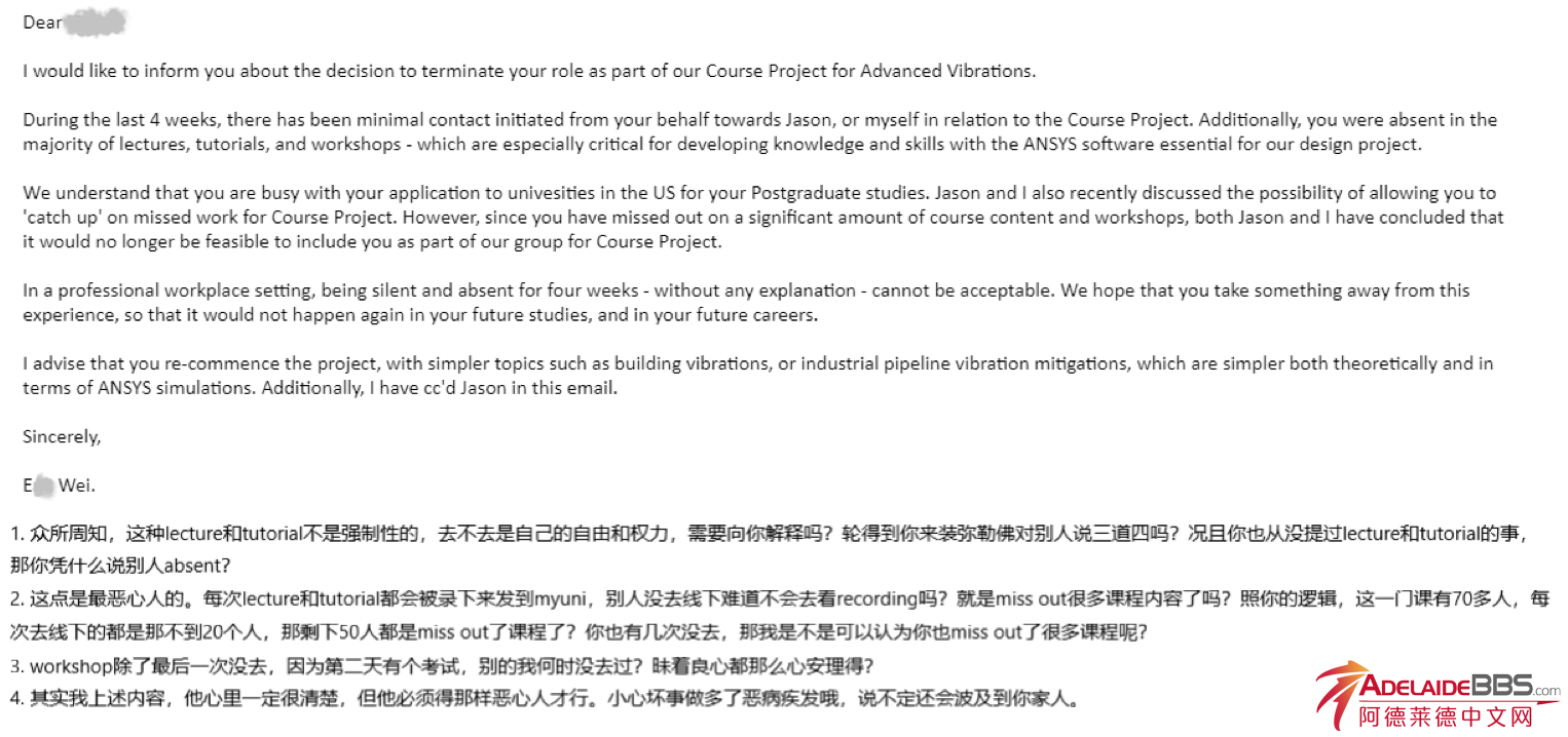 阿大ME专业本科,已毕业回国。这几天在整理以前大学的东西,就想到了之前被背刺的一件事。于是写篇文章来提醒各位阿大的朋友们交友避雷 这是我大四下学期(2023 S2)的真实经历, 事情源于一门4级课的小组pr ...