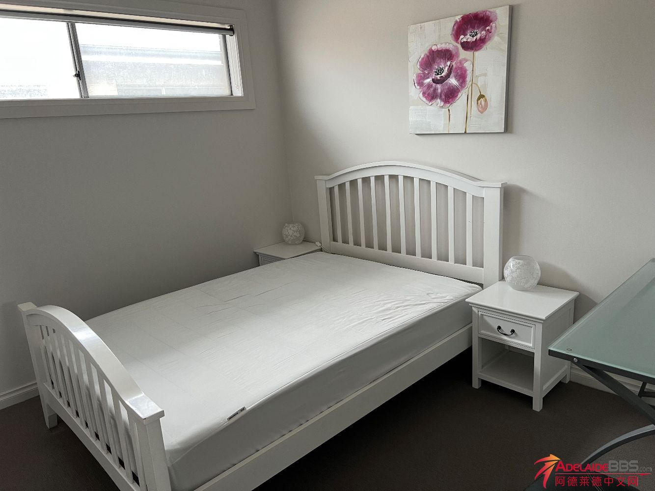 Findon 1间次卧双人床房招租 ,卫生间和浴室分开。门口就是公交站,多路公交车直达City,开车15分钟到City,走路2分钟到Woolworth超市、加油站、药房、咖啡店等生活和交通都非常便利。220刀包Bill、包家具(双人床、 ...